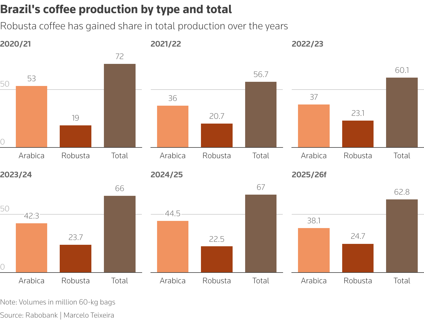 Brazil vốn đã là nước sản xuất cà phê arabica lớn nhất thế giới. Nếu vượt cả Việt Nam trong robusta, Brazil sẽ chính thức trở thành cường quốc cà phê số 1 toàn cầu.