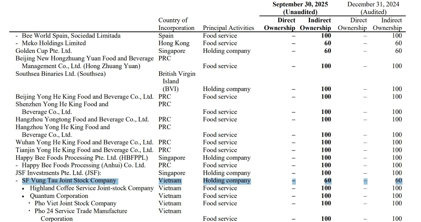 In addition, according to Jollibee Foods Corporation’s reports, the Philippine conglomerate currently holds a 60% stake in SF Vung Tau JSC, the company that owns 100% of Coffee Highlands Service JSC—the entity operating the Highlands Coffee chain.