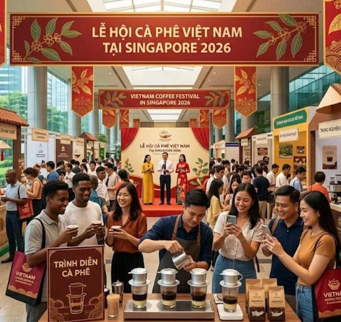Vào ngày 26/6/2026, Đại sứ quán Việt Nam tại Singapore sẽ tổ chức Lễ hội cà phê Việt Nam nhằm hỗ trợ doanh nghiệp Việt mở rộng thị trường, kết nối giao thương.